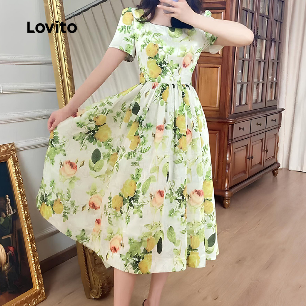 ✅DESTAQUES -❤️Complicado -❤️Boa textura -❤️Primavera e verão -❤️Fixação de zip-back ✅DESCRIÇÕES Estampa / Padrão:floral Estilo:Elegante Tipo de vestido:abaulado Tamanho Plus:Não Material:Poliéster Composição:95%Poliéster + 5%Espandex Tipo de modelagem:(normal) Fit Transparência:Não Esticar:Não-elástico Feito na China ✅O PACOTE INCLUI 1XVestir ✅INTRODUÇÃO LOVITO A Lovito é uma marca em crescimento que acredita no poder das meninas. Estamos comprometidos em oferecer opções de roupas fashion e acessíveis, para todos os estilos, necessidades e identidades. Acreditamos que a moda deve ser divertida, liberadora e fazer você se sentir incrível. Afinal, o melhor acessório para qualquer look é a autoconfiança! ✅NOTAS DE COMPRA Antes de comprar, dê uma olhadinha na tabela de medidas disponível no site. Lembre-se de que, por serem feitas manualmente, as medidas podem variar de 1 a 2 cm. As cores dos produtos também podem ter pequenas diferenças em relação às fotos, dependendo da iluminação e das configurações do seu dispositivo. Siga nossa loja e conheça novos itens e as melhores ofertas para você!! Se você tiver alguma dúvida, converse conosco e responderemos o mais rápido possível.😊