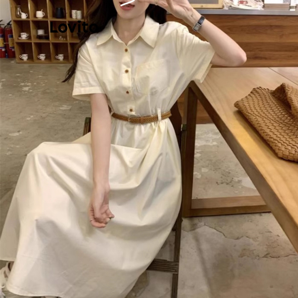Lovito Vestido Elegante Vestido Liso Com Botões Para Mulheres LNE70163\2