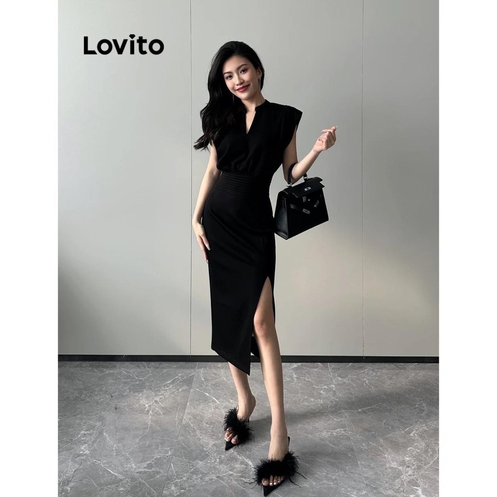 Lovito Vestido Elegante Vestido Liso Dividido Para Mulheres LNE58064\3