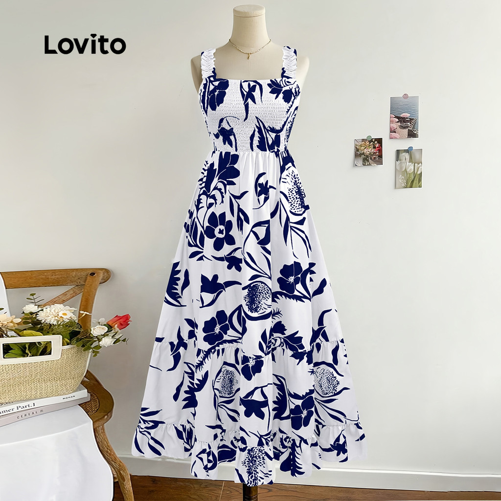 Lovito Vestido Estilo Boho com Estampa Floral, Modelagem para Lazer, Primavera/Verão L155ED026