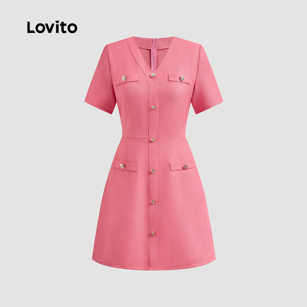 Lovito Vestido Feminino Casual com Botões Lisos para Primavera/Verão LBL24123