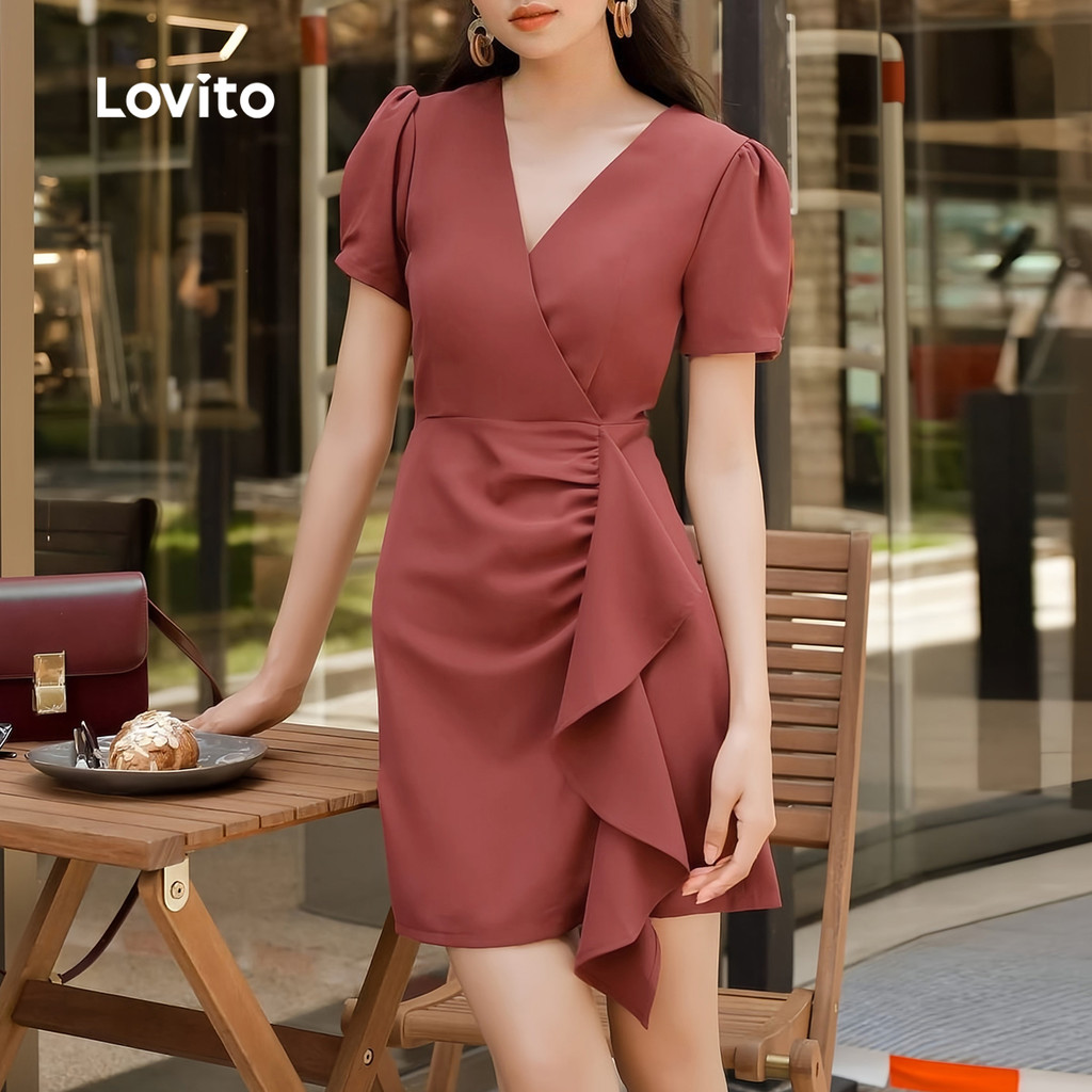 ✅DESTAQUES -❤️Babado -❤️Simples -❤️Plissado -❤️Macio e confortável -❤️Primavera e verão -❤️Zip lateral ✅DESCRIÇÕES Estampa / Padrão:Liso Estilo:Elegante Tipo de vestido: embrulho Tamanho Plus:Não Material: Poliéster Composição:100% Poliéster Tipo de modelagem:Justo Fit Transparência:Não Esticar:Não esticado Feito na China ✅O PACOTE INCLUI 1XVestir ✅INTRODUÇÃO LOVITO A Lovito é uma marca em crescimento que acredita no poder das meninas. Estamos comprometidos em oferecer opções de roupas fashion e acessíveis, para todos os estilos, necessidades e identidades. Acreditamos que a moda deve ser divertida, liberadora e fazer você se sentir incrível. Afinal, o melhor acessório para qualquer look é a autoconfiança! ✅NOTAS DE COMPRA Antes de comprar, dê uma olhadinha na tabela de medidas disponível no site. Lembre-se de que, por serem feitas manualmente, as medidas podem variar de 1 a 2 cm. As cores dos produtos também podem ter pequenas diferenças em relação às fotos, dependendo da iluminação e das configurações do seu dispositivo. Siga nossa loja e conheça novos itens e as melhores ofertas para você!! Se você tiver alguma dúvida, converse conosco e responderemos o mais rápido possível.😊