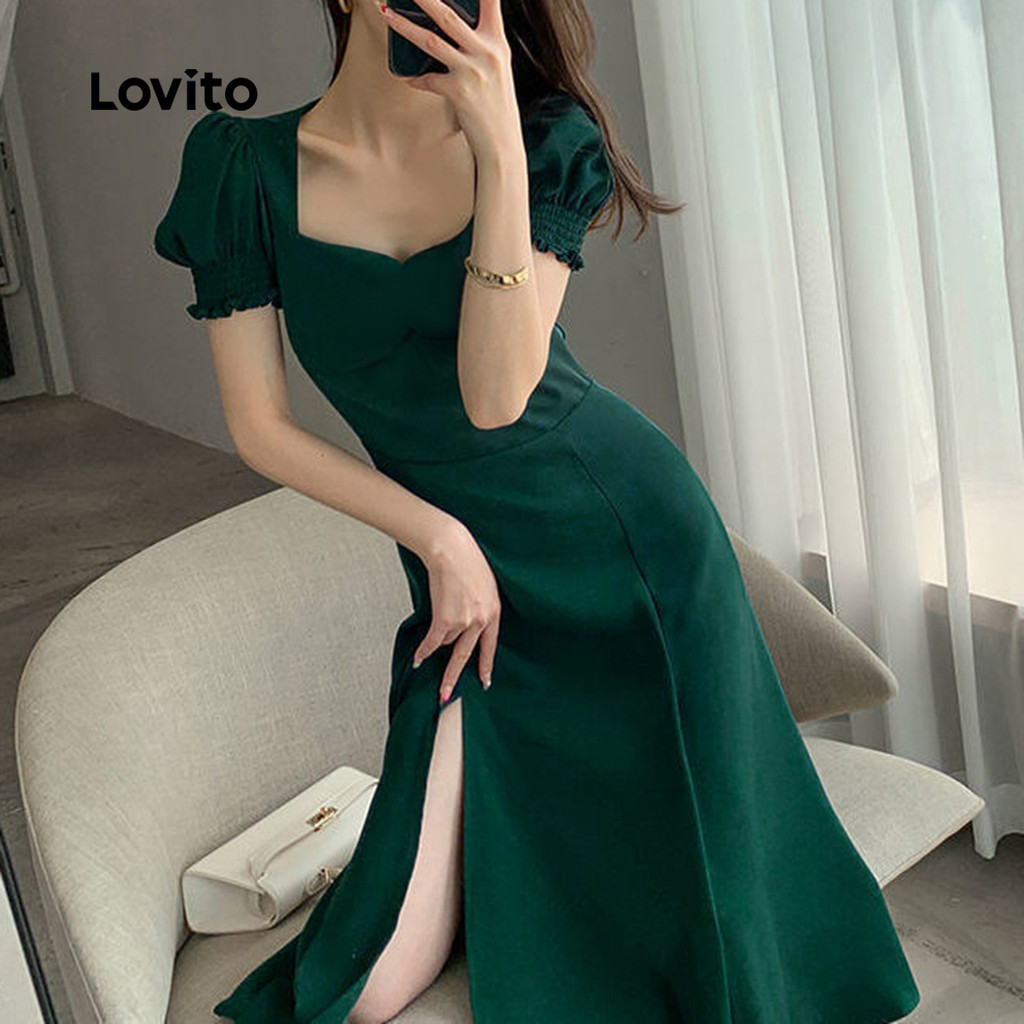 Lovito Vestido feminino elegante com corte reto e frente dividida L129ED267