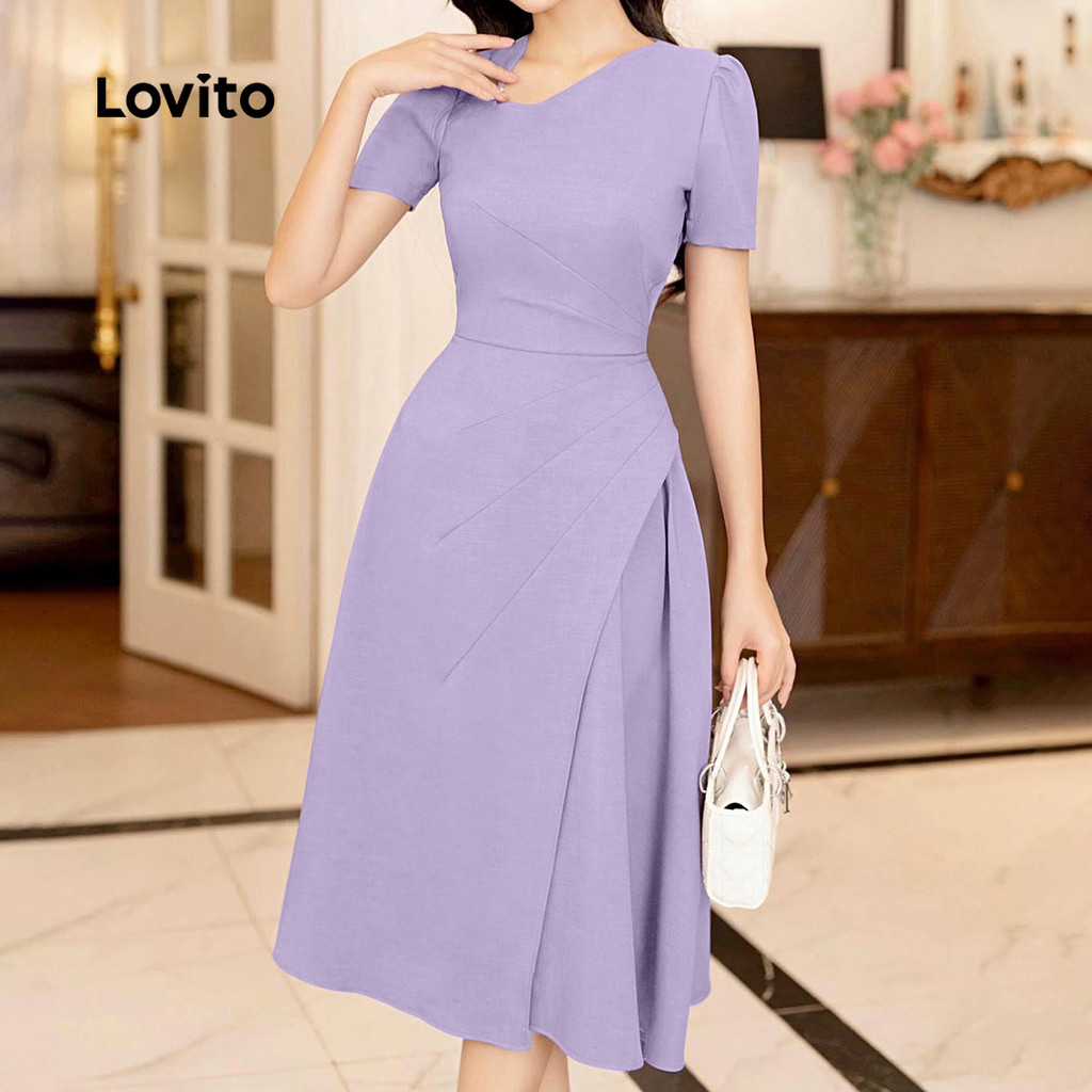 Lovito Vestido Feminino Elegante com Linha Estruturada Zíper Assimétrico Primavera/verão Roxo L172ED1610