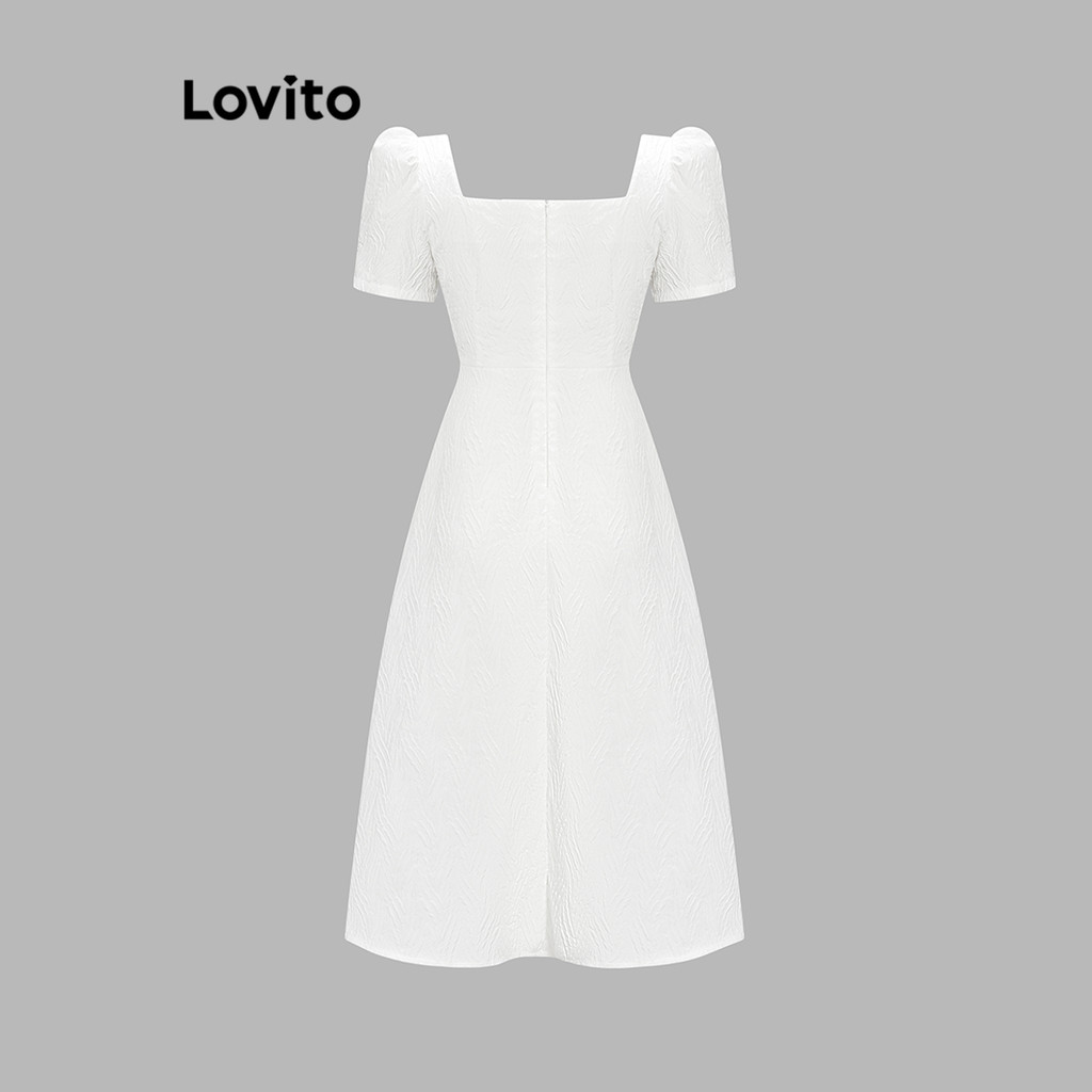 Lovito Vestido Feminino Elegante de Primavera/Verão com Manga Bufante e Gola Quadrada L65ED170 (Branco)