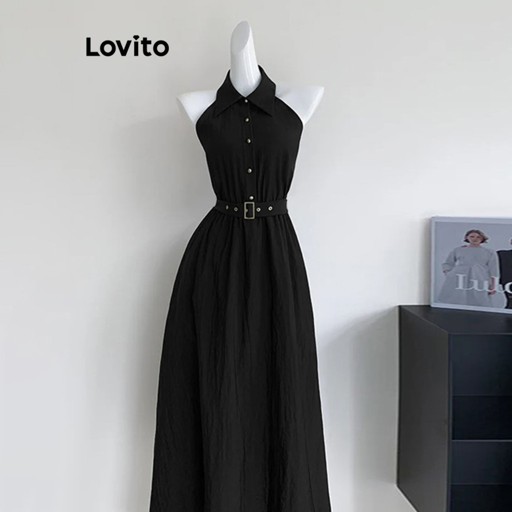 Lovito Vestido Feminino Elegante Liso com Cinto para Mulheres L100MD424