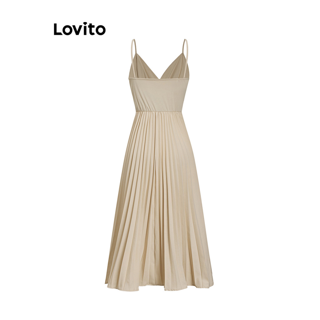Lovito Vestido Feminino Elegante Plissado Liso L105MD560