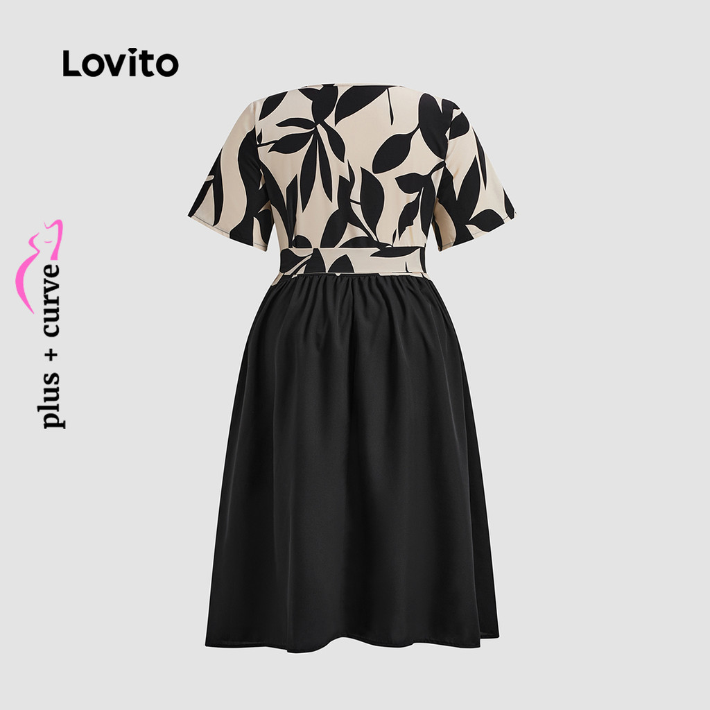 Lovito Vestido Feminino Plus Size Estampa Floral Cinto Costura Tecido Verão/Primavera LBL22179