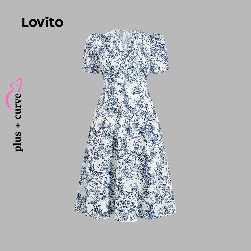 Lovito Vestido Feminino Plus Size Floral com Costura Envolvente Verão/Primavera LBL24096
