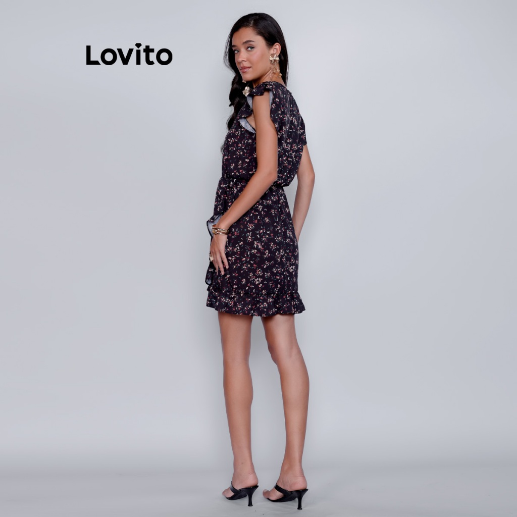 Lovito Vestido Feminino Transpassado Romântico Estampa Floral BRDRB1335BRL1365