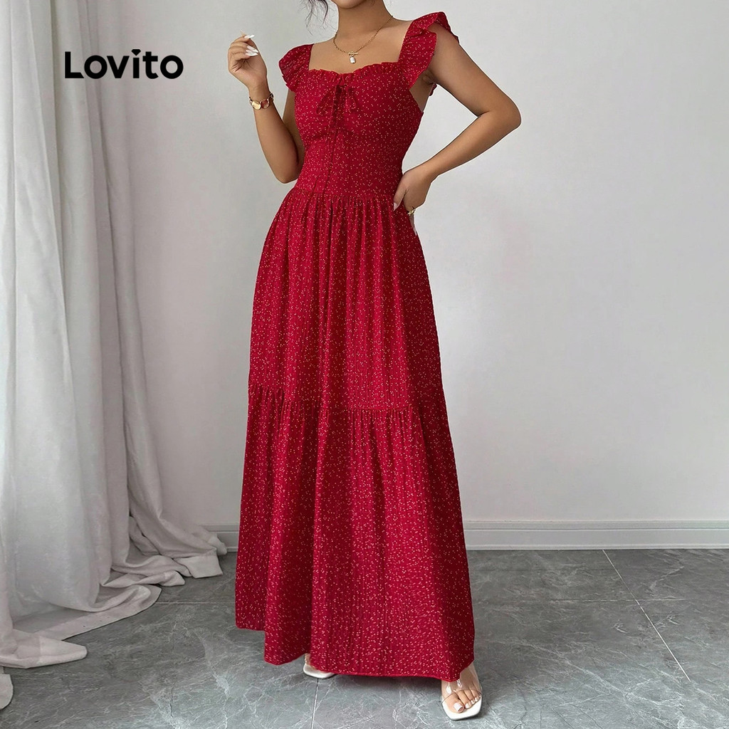 Lovito Vestido Feminino Vermelho com Amarração para Festa de Natal Primavera/Verão Vinho L167LD036