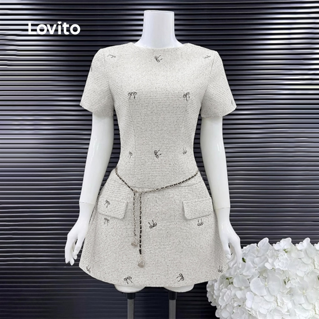 Lovito Vestido Fofo com Laço Primavera/verão Leve Caqui para Mulheres L144AD161