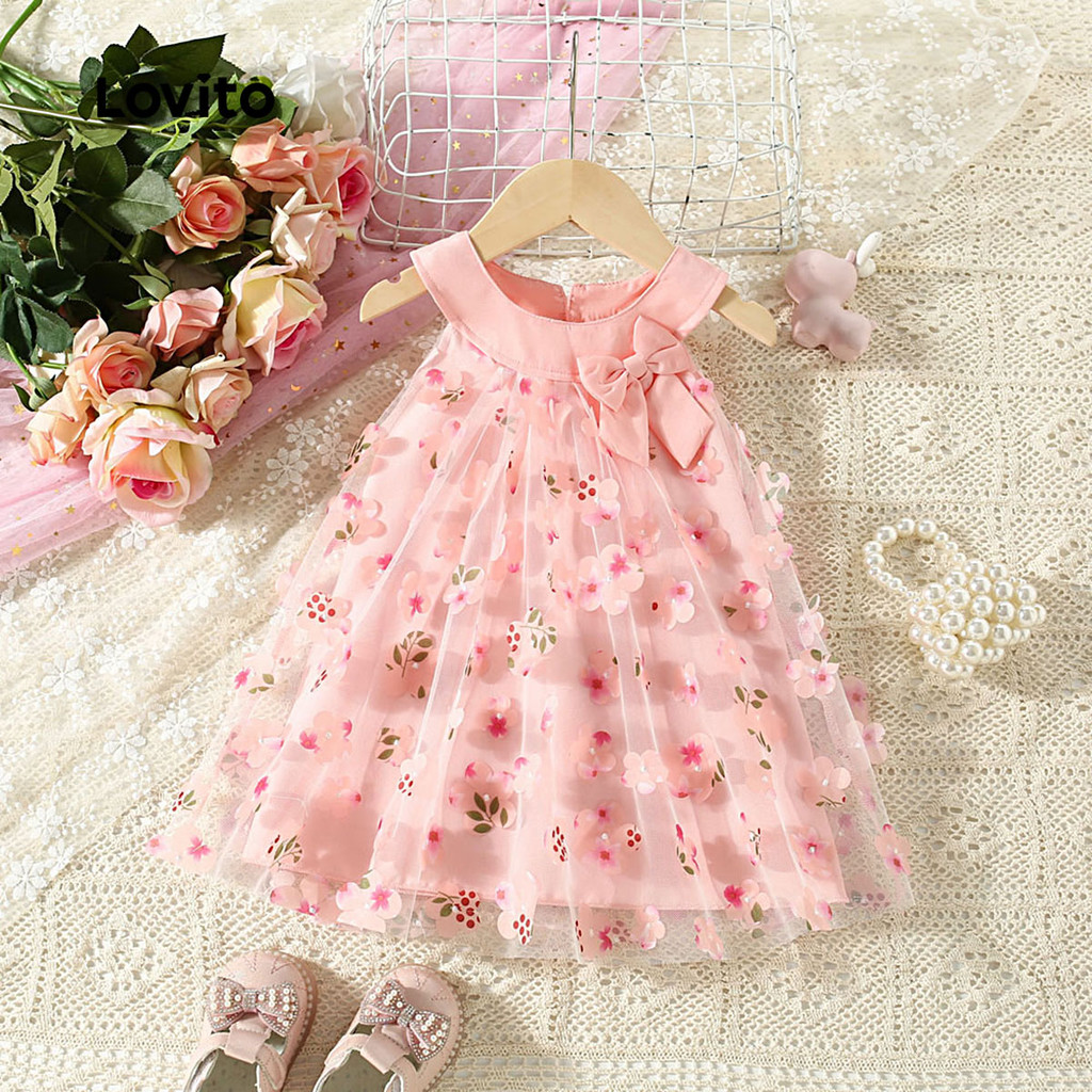 Lovito Vestido Fofo Ditsy Floral Com Laço Rosa Para Bebê LCS099029