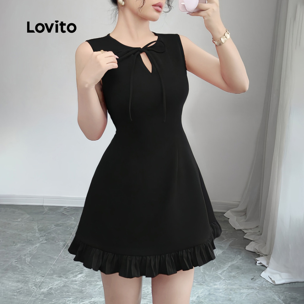 ✅DESTAQUES -❤️oco -❤️Bainha inglesa -❤️Amarre -se -❤️Alta elasticidade -❤️Primavera e verão ✅DESCRIÇÕES Estampa / Padrão:Simples Estilo:Glamoroso Tipo de vestido:descaroção Tamanho Plus:Não Material:Poliéster Composição:95% Poliéster + 5% Elastano Tipo de modelagem:Justo ao corpo Transparência:Não Esticar:Alta Elasticidade Feito na China ✅O PACOTE INCLUI 1XVestir ✅INTRODUÇÃO LOVITO A Lovito é uma marca em crescimento que acredita no poder das meninas. Estamos comprometidos em oferecer opções de roupas fashion e acessíveis, para todos os estilos, necessidades e identidades. Acreditamos que a moda deve ser divertida, liberadora e fazer você se sentir incrível. Afinal, o melhor acessório para qualquer look é a autoconfiança! ✅NOTAS DE COMPRA Antes de comprar, dê uma olhadinha na tabela de medidas disponível no site. Lembre-se de que, por serem feitas manualmente, as medidas podem variar de 1 a 2 cm. As cores dos produtos também podem ter pequenas diferenças em relação às fotos, dependendo da iluminação e das configurações do seu dispositivo. Siga nossa loja e conheça novos itens e as melhores ofertas para você!! Se você tiver alguma dúvida, converse conosco e responderemos o mais rápido possível.😊