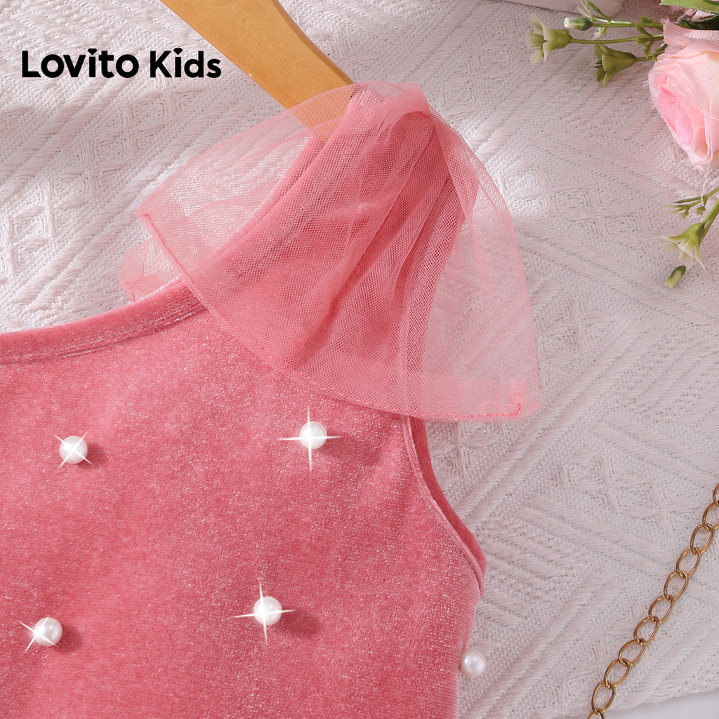 Lovito Vestido Infantil Casual Laço Detalhes Tule Contrastante E Pérolas Estilo Princesa Rosa Primavera/verão LNL136109