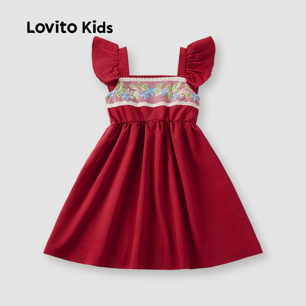 Lovito Vestido Infantil Fofo Com Babados Vermelho Para Meninas Ideal Para Primavera/verão L162LD279