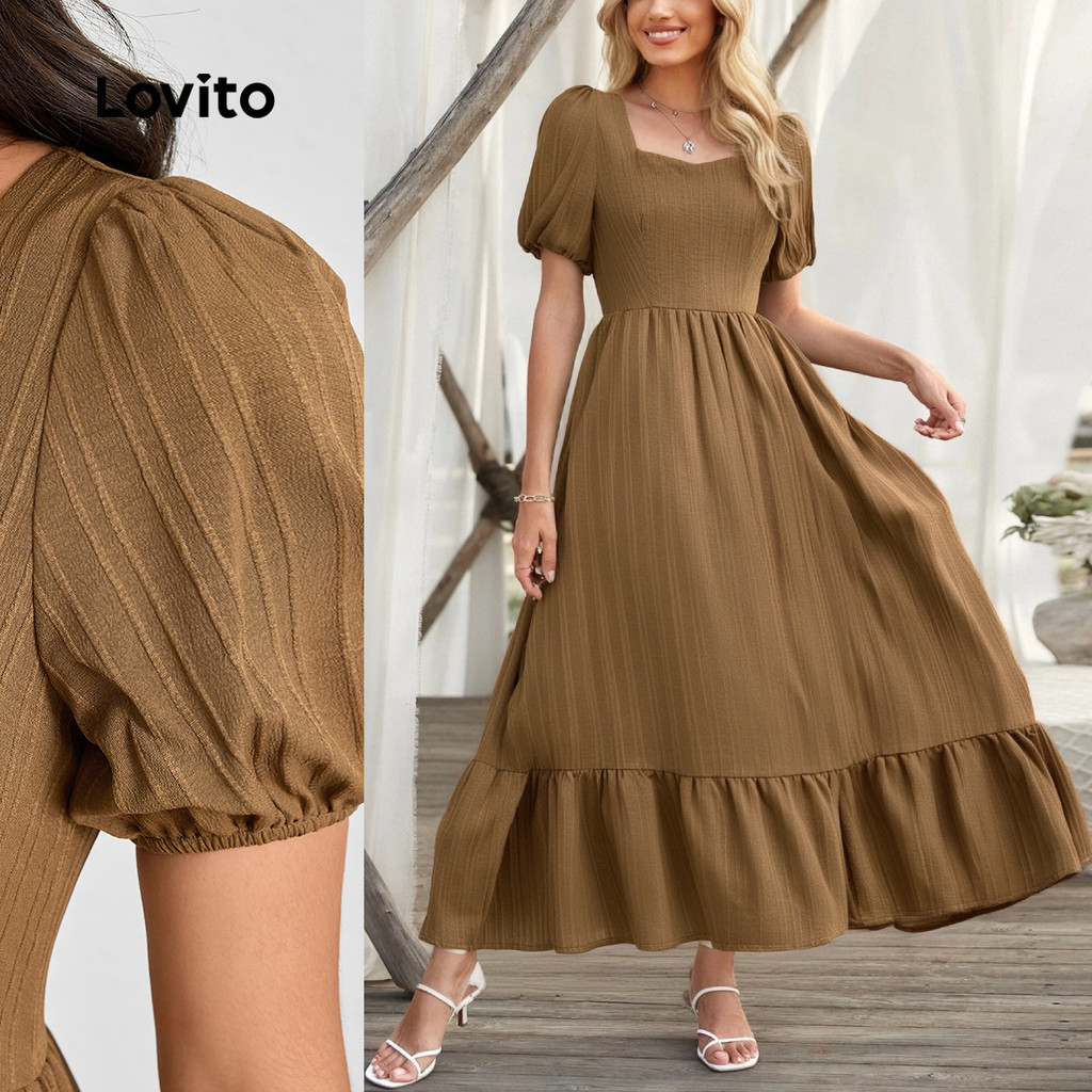 Lovito Vestido Jacquard elegante com costura em tecido liso para mulheres LBL23613