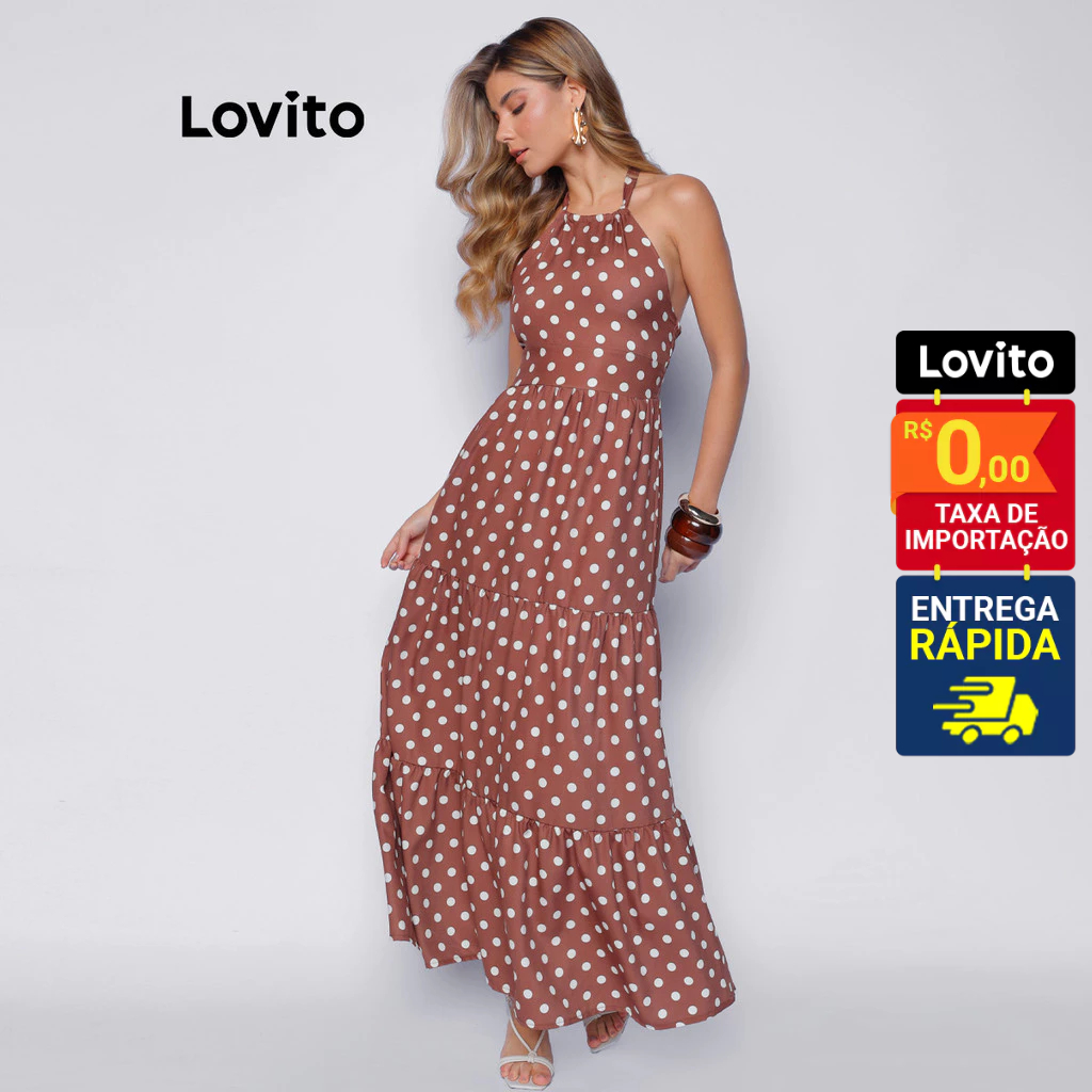 Lovito Vestido Longo Poa Moda Bolinhas Elegante de Poá Feminino LB1334BRL1364