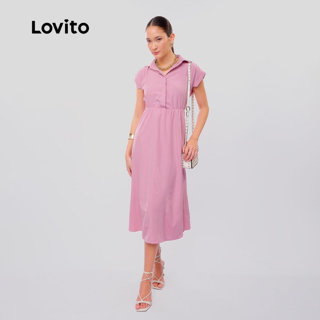 Lovito Vestido Midi Rosa Moda Elegante Feminino Liso em A LB612BRL642