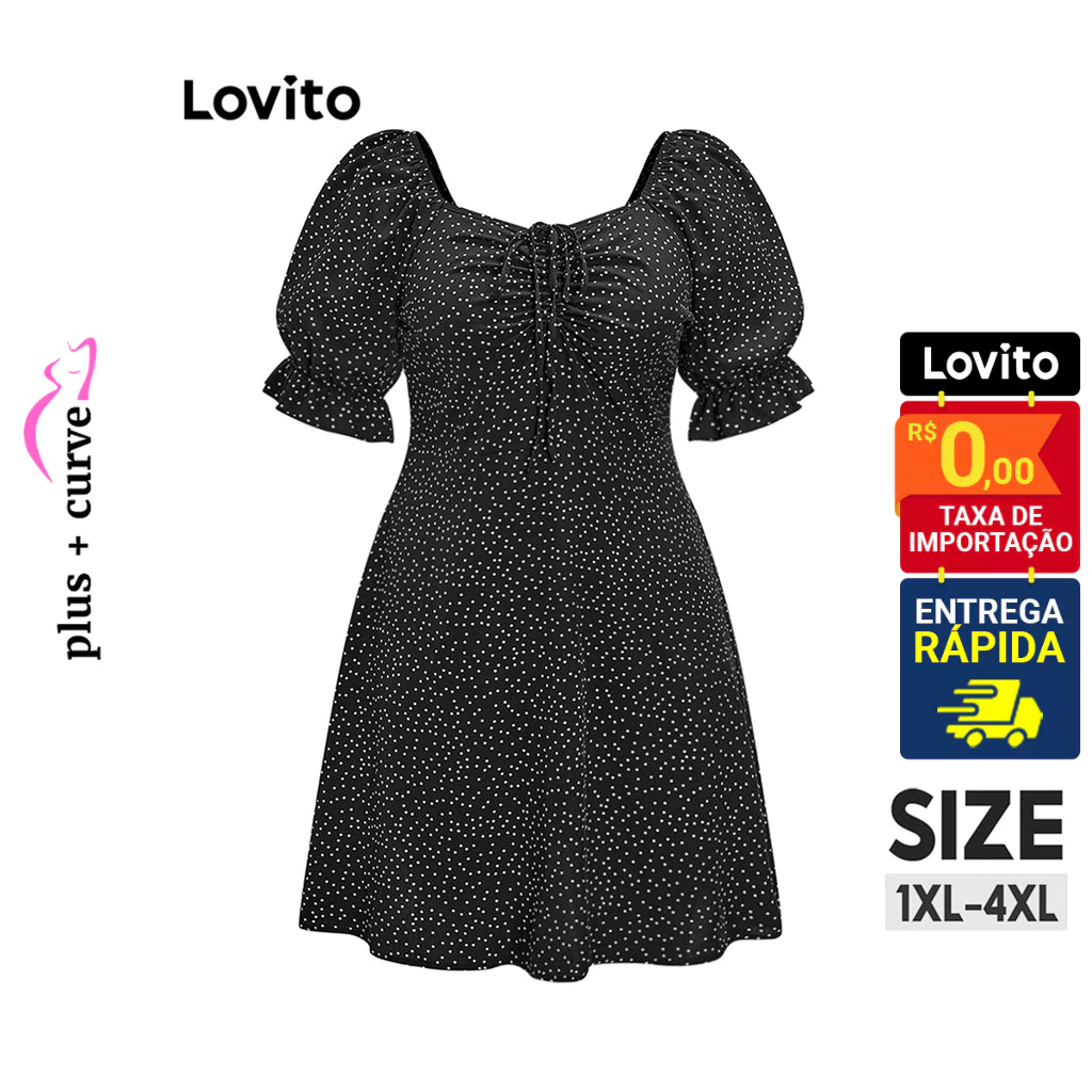 Lovito Vestido Plus Size Manga Bufante Estampa Polka Dot Feminino LBE02087
