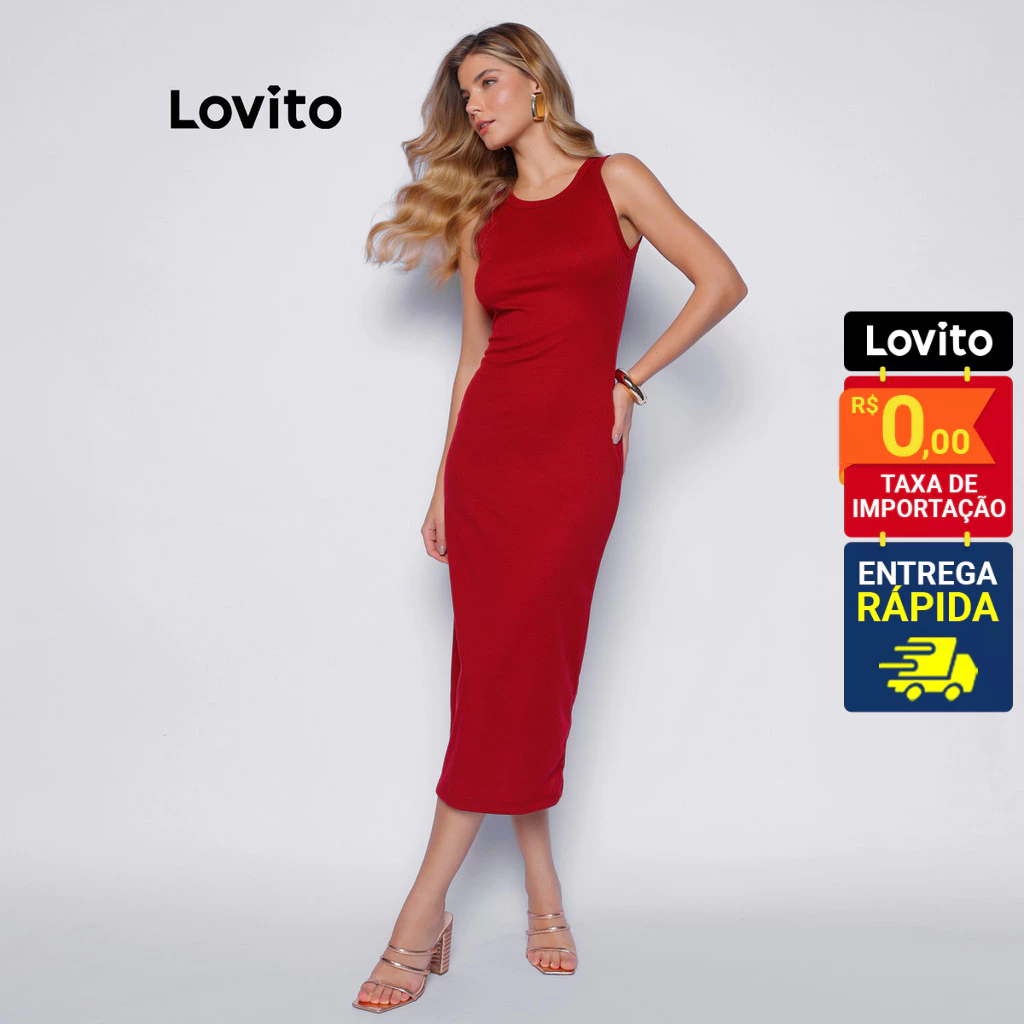 Lovito Vestido Regata Midi Vermelho Casual Liso Feminino LB898BRL929