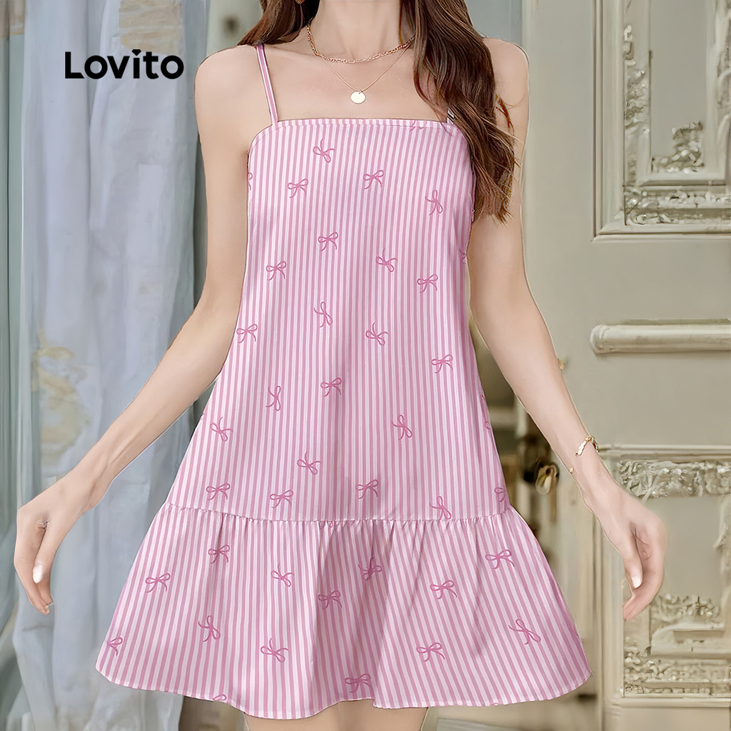 ✅DESTAQUES -❤️Faixa Lateral -❤️Bainha com babados Bainha com babados -❤️Simples -❤️Macio e confortável -❤️Primavera e verão ✅DESCRIÇÕES Estampa / Padrão:Listrado Estilo:Casual Tipo de vestido:Um Item. Tamanho Plus:No Material:Poliéster Composição:100%Polyester Tipo de modelagem:Regular Fit Transparência:No Esticar:Non-stretch Feito na China ✅O PACOTE INCLUI 1XVestir ✅INTRODUÇÃO LOVITO A Lovito é uma marca em crescimento que acredita no poder das meninas. Estamos comprometidos em oferecer opções de roupas fashion e acessíveis, para todos os estilos, necessidades e identidades. Acreditamos que a moda deve ser divertida, liberadora e fazer você se sentir incrível. Afinal, o melhor acessório para qualquer look é a autoconfiança! ✅NOTAS DE COMPRA Antes de comprar, dê uma olhadinha na tabela de medidas disponível no site. Lembre-se de que, por serem feitas manualmente, as medidas podem variar de 1 a 2 cm. As cores dos produtos também podem ter pequenas diferenças em relação às fotos, dependendo da iluminação e das configurações do seu dispositivo. Siga nossa loja e conheça novos itens e as melhores ofertas para você!! Se você tiver alguma dúvida, converse conosco e responderemos o mais rápido possível.