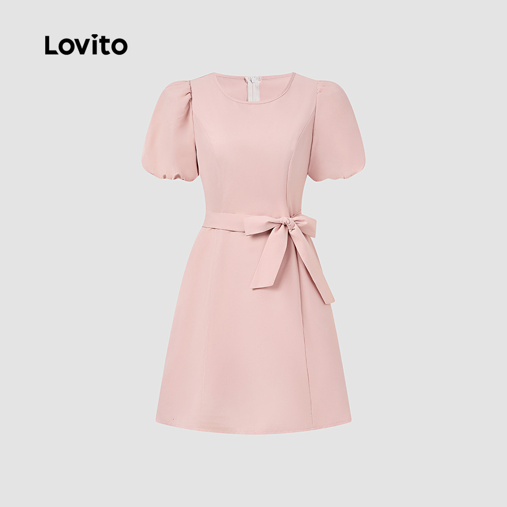 Lovito Vestido Rosa Feminino Primavera/verão, Casual, com Cadarço, Simples, para lazer. L173AD087