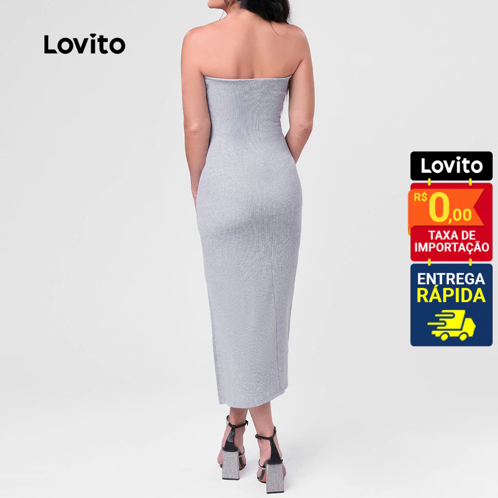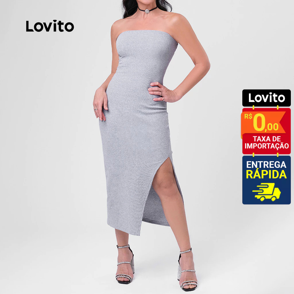 Lovito Vestido Sem Alças Midi Com Fenda Tubo Feminino LB166BRL195
