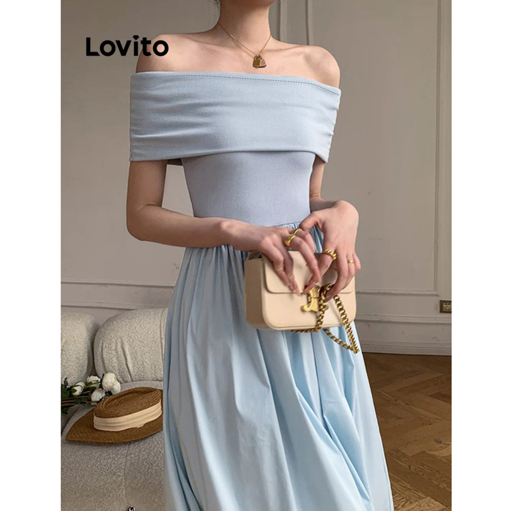Lovito Vestido Sofisticado De Tecido Liso Com Costura Em Ombro Frio Para Mulheres L100MD428