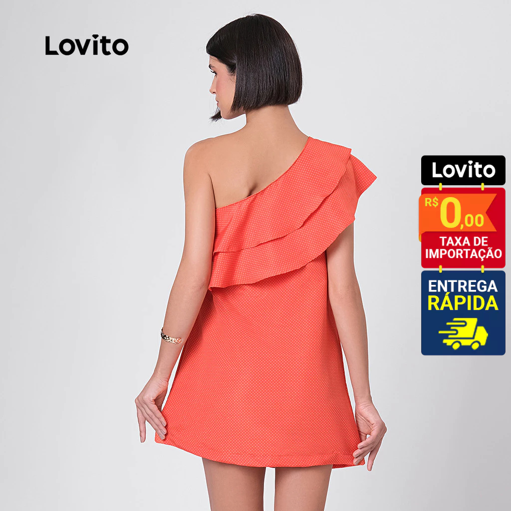 Lovito Vestido Viscose Feminino Curto Um Ombro Só Com Babados LB76BRL105