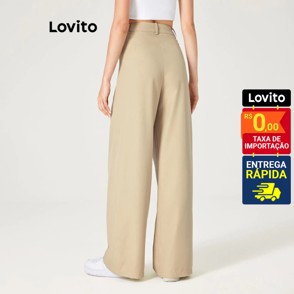 Lovito x Glenda Calça Feminina de Pernas Largas com Pregas L74ED153