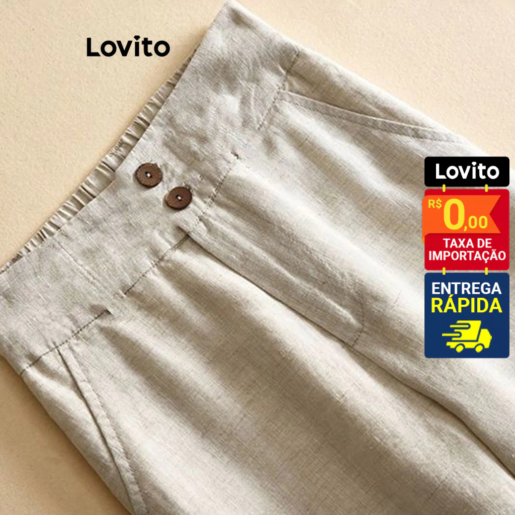 Lovito x Glenda Calça Feminina Linho Casual com Botões LNE21224
