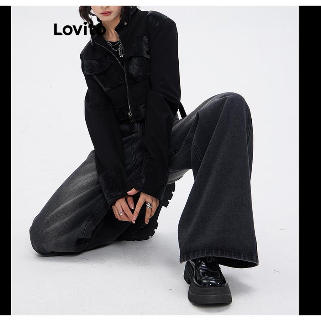 Lovito x Glenda Jeans Femininos Casuais Com Botão Liso E Bolso Frontal Com Zíper LNA49080