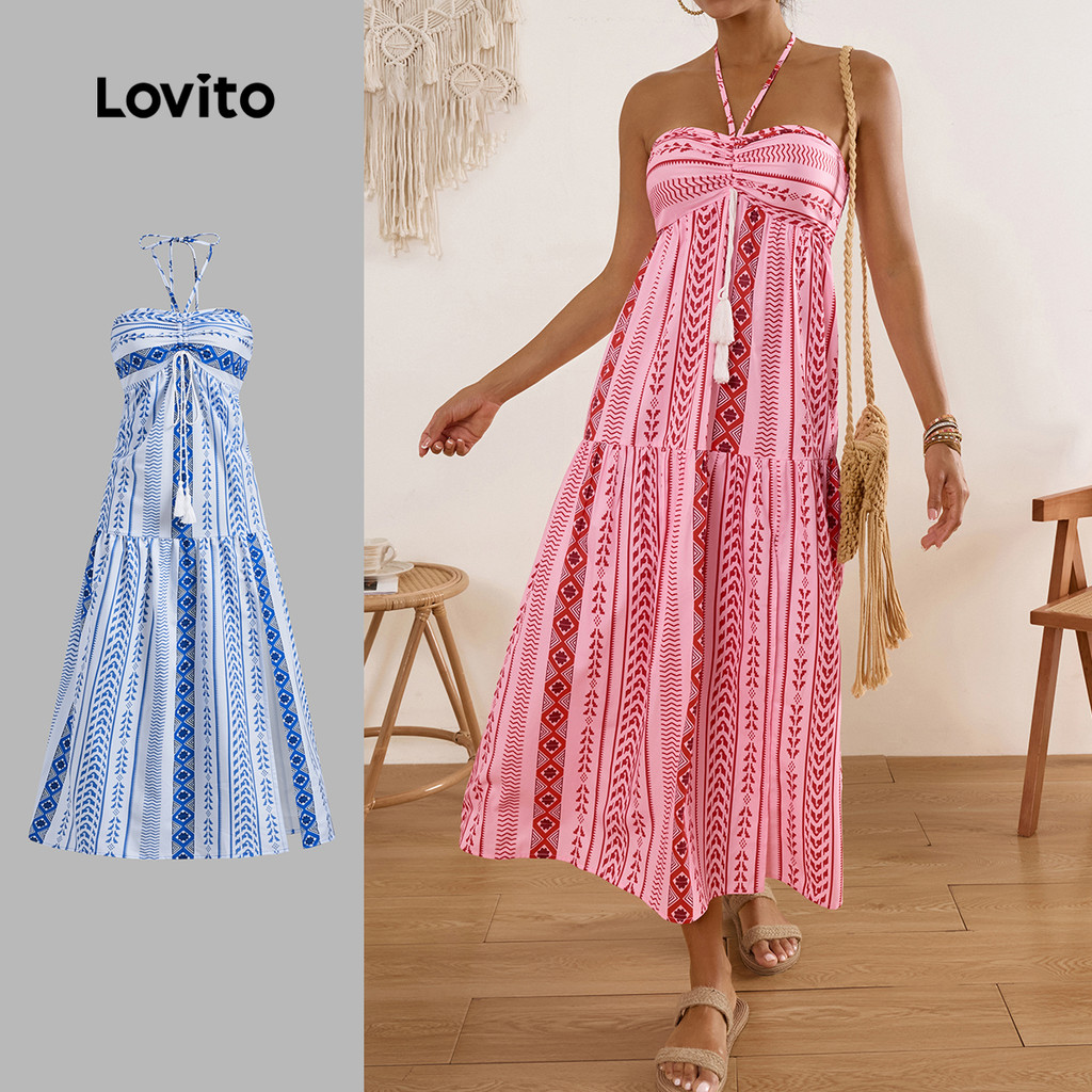 Lovito x Glenda Vestido Boho Com Estampa Tribal E Borla Para Mulheres LBL17610