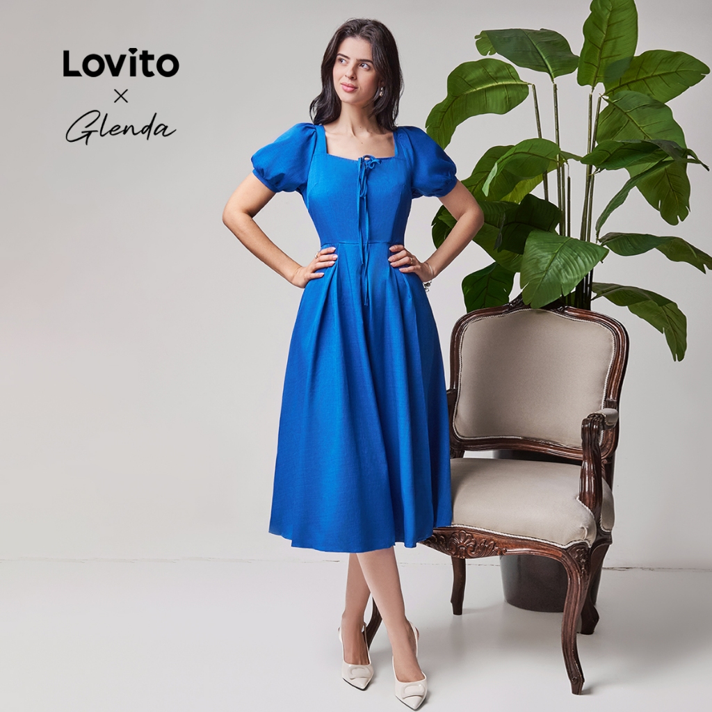 Onde comprar Lovito x Glenda Vestido Casual Plissado Com Cadarço Vestido De Verão/Primavera Para Mulheres LBL23071?
