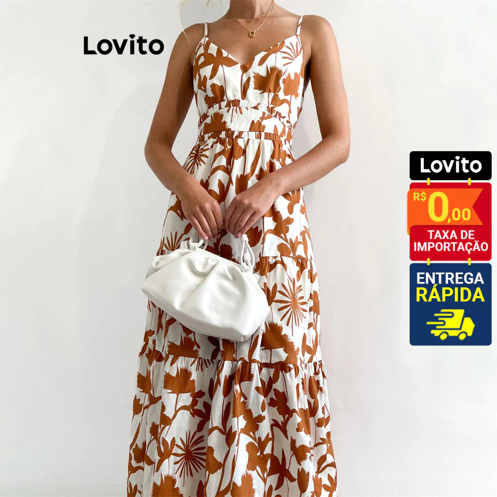 Lovito x Glenda Vestido Longo Feminino com Estampa Floral e Alças Finas LNL39193