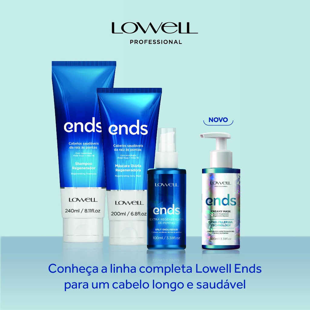 Lowell Ends Creamy Mask - Booster Regenerador 100ml O Booster Creamy Mask chegou para revolucionar a sua rotina de cuidados. Proporciona um resultado imediato, com muito mais regeneração, brilho e força, promovendo selagem imediata, controle do frizz e toque acetinado aos fios. Com tecnologia densi-filler 18A, confere fios mais densos e resistentes, com cutículas regeneradas, menos quebra e muito brilho. Conselho de Aplicação Aplique a quantidade desejada nas mãos e distribua no comprimento, pontas e massageie. Deixe agir por 3 minutos e enxágue.