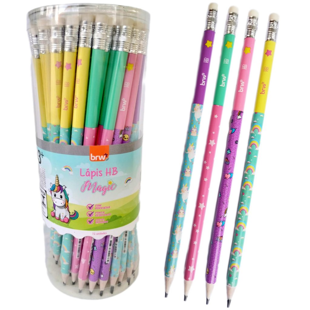 LP7211P - Kit Lápis de Escrever Escolar Preto HB Magic Decorado com Borracha BRW