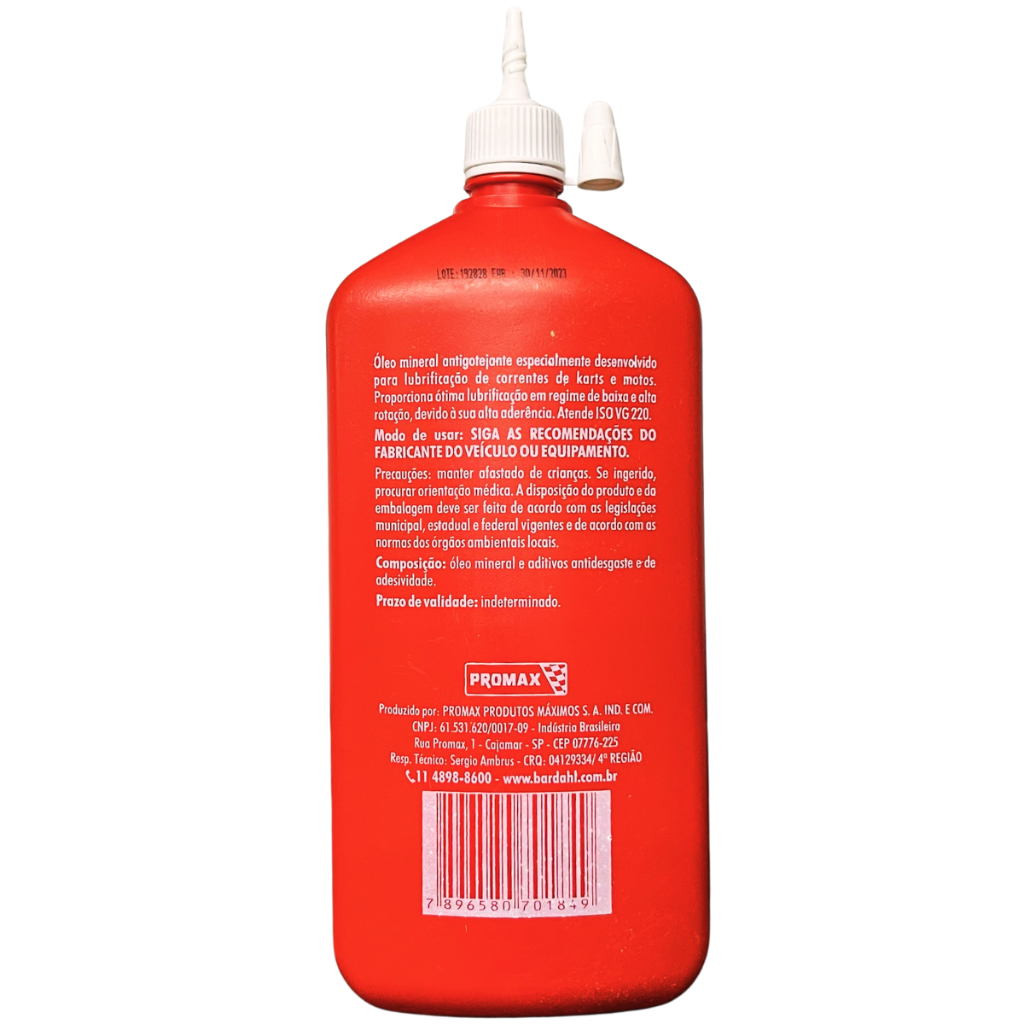 Lubrificante mineral, antigotejante e altamente aderente, para lubrificação de correntes de kart de competições e motocicletas, especialmente para operações em regimes severos como altas rotações e temperaturas. Antidesgaste - Reduz consideravelmente o atrito, oferecendo redução no desgaste do conjunto coroa/corrente/pinhão. Diminui a temperatura de operação pela redução do atrito. Anticorrosivo e antiferrugem - Possui tecnologia de aditivos anticorrosivo e antiferrugem que previne a corrosão das partes metálicas. APLICAÇÃO: Lubrificante indicado para correntes de karts e motos em geral. OBSERVAÇÕES: Produto NOVO e com nota fiscal. Cada embalagem possui 500ml. ITENS INCLUSOS: 01 - Bardahl Maxlub Kart Moto