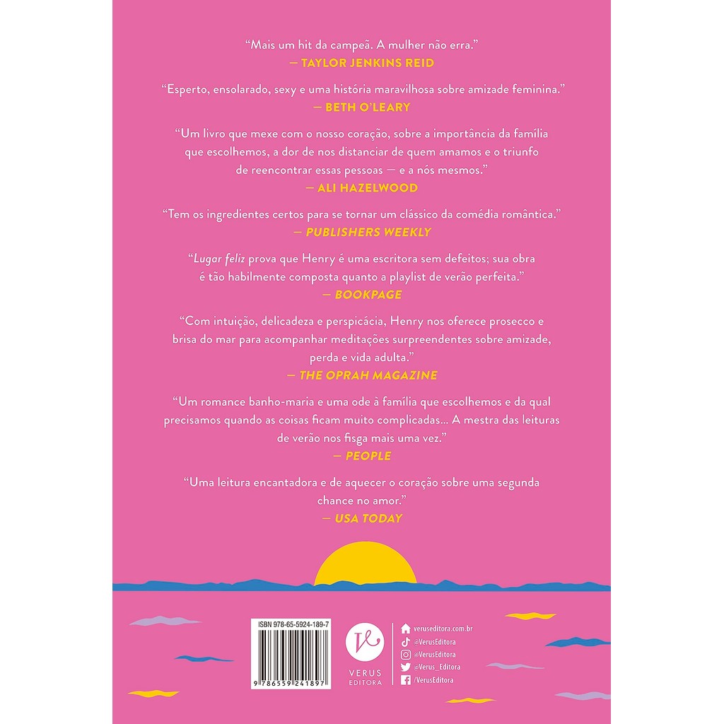 Novo romance de Emily Henry, autora do hit Leitura de verão. Com diálogos espertos, charme e coração, Lugar feliz traz a história de um casal indeciso, presos numa mentira. E dos melhores amigos deles, que a vida está levando em direções diferentes. Harriet e Wyn são o casal dos sonhos desde a faculdade ― eles sempre foram perfeitos juntos, como sal e pimenta, mel e chá, queijo e goiabada. Só que agora ― por razões sobre as quais não conversam ― eles não combinam mais. Faz cinco meses que Harriet e Wyn terminaram, e ainda não contaram aos seus melhores amigos. Assim, continuam dividindo o maior quarto da casa no Maine onde sua turma de amigos passa férias há uma década. Todo ano, por uma semana vibrante e colorida, eles dão uma pausa na rotina e vão beber vinho, se empanturrar de queijo e frutos do mar e curtir a praia com as suas pessoas favoritas. Só que este ano Harriet e Wyn estão mentindo na cara dura enquanto tentam disfarçar que ainda se querem desesperadamente. Porque a casa no Maine está à venda, e esta é a última semana que os amigos terão para ficar juntos no paraíso. Harriet e Wyn não querem estragar as férias, então fingem que está tudo bem. Ela vai continuar sendo a médica-residente motivada que jamais começa uma briga, e ele, o cara charmoso e descontraído que nunca deixa transparecer os problemas. É um plano infalível ― se você olhar bem de longe e com óculos de sol com manchas de protetor solar nas lentes. Depois de anos apaixonados, não deve ser tão difícil fingir por apenas uma semana, na frente das pessoas que conhecem os dois como ninguém… certo? “Mais um hit da campeã. A mulher não erra.” ― Taylor Jenkins Reid “Esperto, ensolarado, sexy e uma história maravilhosa sobre amizade feminina.” ― Beth O’leary “Um livro que mexe com o nosso coração, sobre a importância da família que escolhemos, a dor de nos distanciar de quem amamos e o triunfo de reencontrar essas pessoas ― e a nós mesmos.” ― Ali Hazelwood “Tem os ingredientes certos para se tornar um clássico da comédia romântica.” ― Publishers Weekly “Lugar feliz prova que Henry é uma escritora sem defeitos; sua obra é tão habilmente composta quanto a playlist de verão perfeita.” ― Bookpage “Com intuição, delicadeza e perspicácia, Henry nos oferece prosecco e brisa do mar para acompanhar meditações surpreendentes sobre amizade, perda e vida adulta.” ― The Oprah Magazine “Um romance banho-maria e uma ode à família que escolhemos e da qual precisamos quando as coisas ficam muito complicadas… A mestra das leituras de verão nos fisga mais uma vez.” ― People “Uma leitura encantadora e de aquecer o coração sobre uma segunda chance no amor.” ― Usa Today
