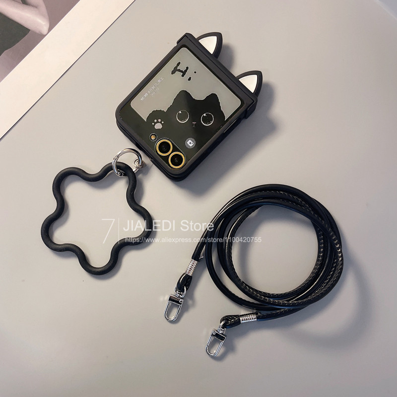 LUKEN Bonito Orelhas Pulseira Cinta Tela Temperado Filme Dobradiça Caso De Telefone Para Samsung Galaxy Z Flip 5 6 7 fli