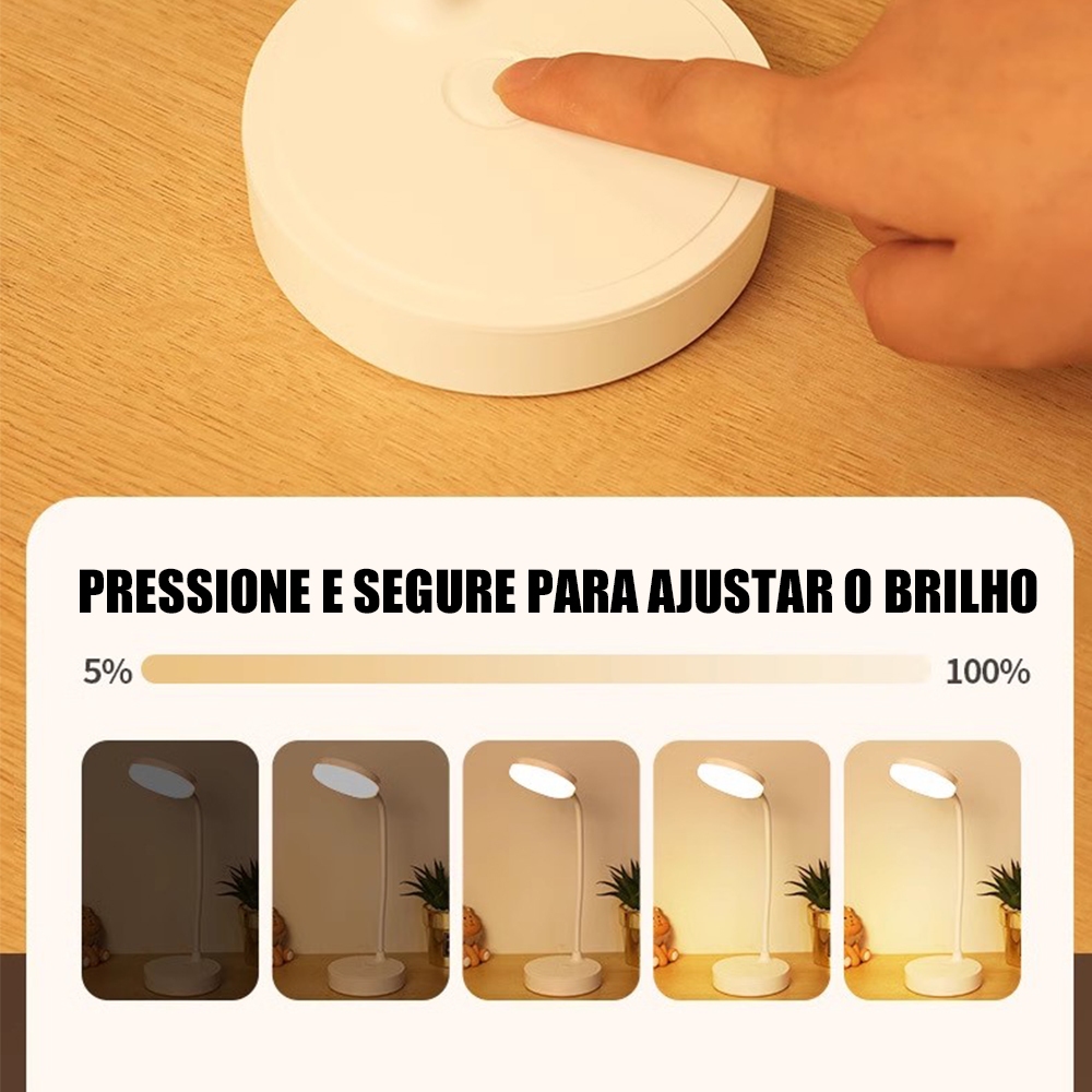 Luminária Abajur de Mesa LED Luz Recarregável Touch Haste Autonomia Ultra Longa Flexível Lâmpada De Estudo Sem Fio