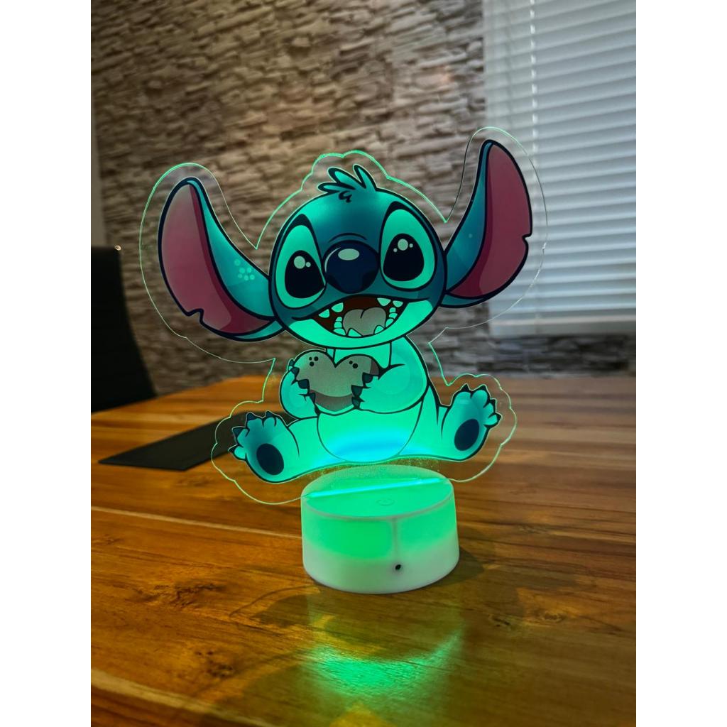 Luminária Decorativa Temática Stitch - Ilumine seu Espaço com Estilo! Abajur Transforme seu ambiente com a encantadora Luminária Decorativa do Stitch! Feita com materiais de alta qualidade, essa luminária não apenas ilumina, mas também adiciona um toque de magia e diversão ao seu quarto, sala ou escritório. 🧡 DETALHES: Material: Plástico resistente base led, corpo luminária em acrílico 2mm com impressão em alta qualidade. Dimensões: • Tamanho da base (diâmetro): 10cm • Tamanho da altura da base: 4cm • Altura aproximada da luminária (altura base + acrílico): 17cm Cor: LED RGB. Fonte de Alimentação: USB (cabo incluído). Por que escolher nossa luminária? • Design encantador; • Alta qualidade e durabilidade; • Iluminação suave e agradável para criar uma atmosfera acolhedora; OBSERVAÇÕES IMPORTANTES: • Modelo funciona ligado á tomada e também com pilhas não precisando ficar ligado na tomada e evitando fios. • LED RGB com escolha de cores e efeitos. • Enviado com cabo UBS (Não acompanha a fonte de energia).
