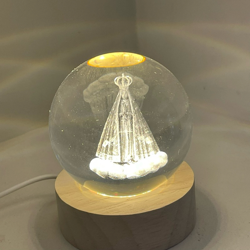 Luminária Abajur Nossa Senhora Aparecida São Bento Bola Cristal USB presente