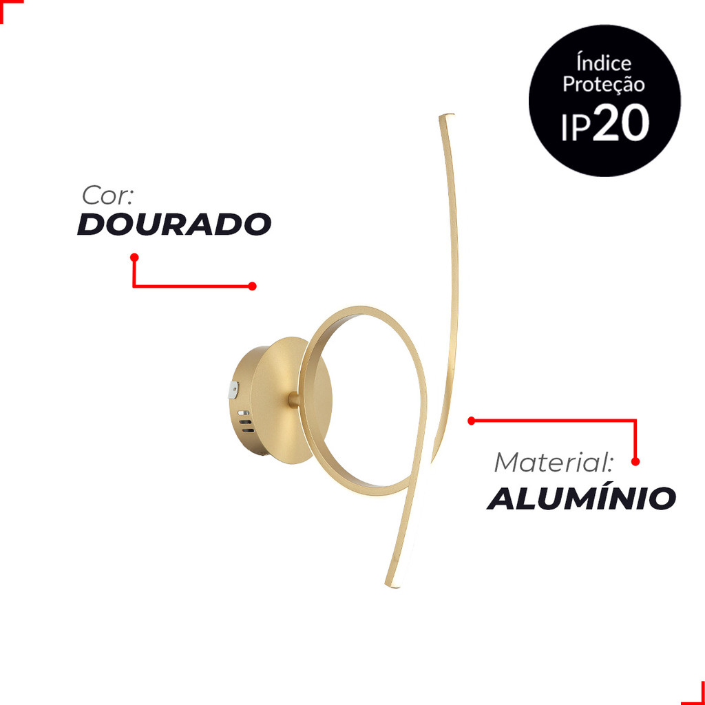 Luminaria Arandela Led Liz 18w 3000K/6500K Dourado Avant