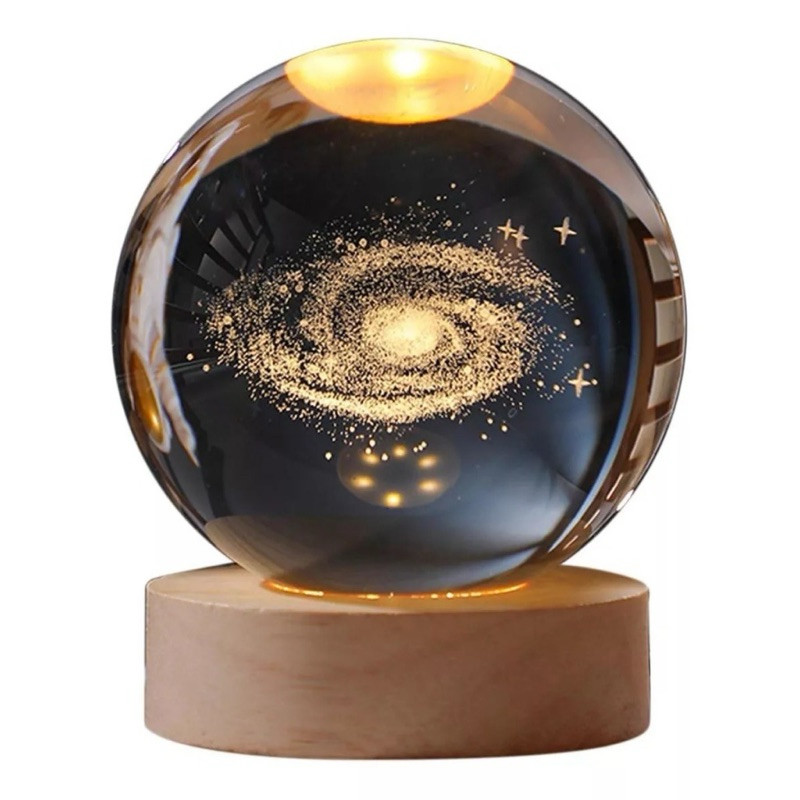 Luminária Bola Esfera Cristal De Mesa Planeta Terra Galáxia Sistema Solar