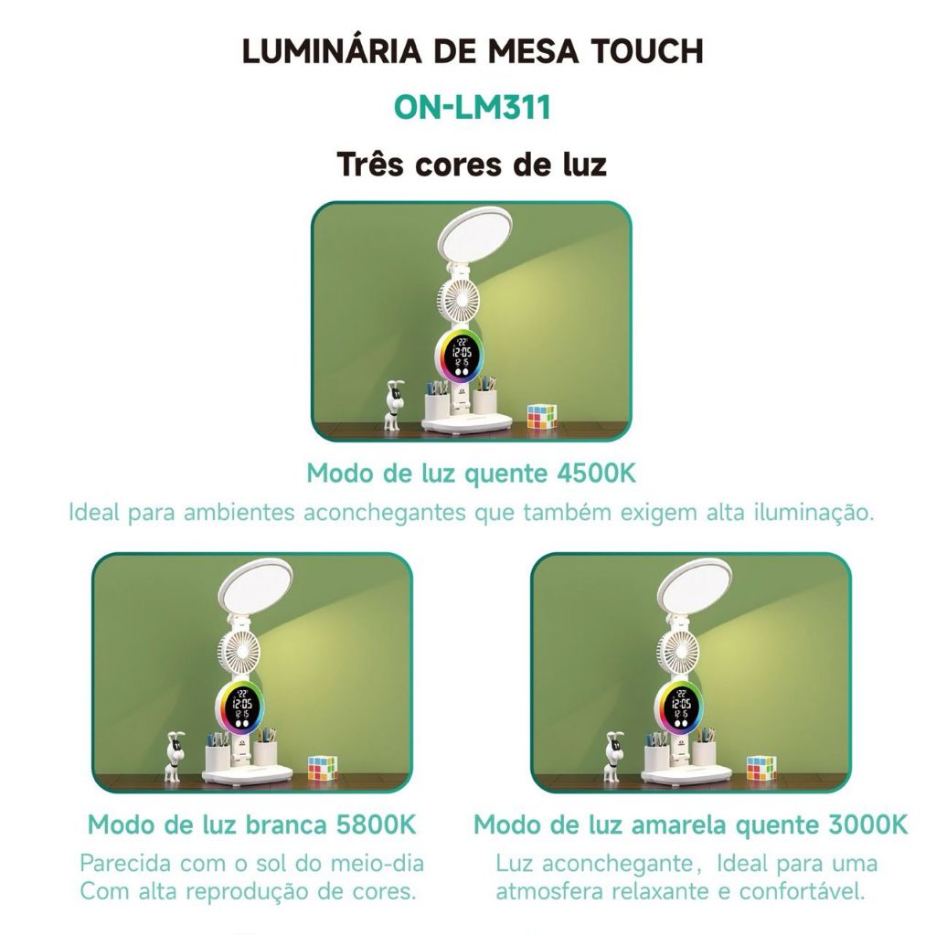 Luminária com Ventilador Mesa Touch Onistek ON-LM311