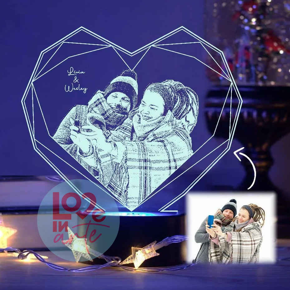 Luminária Coração 7 cores RGB Geométrico Nome do Casal - Presente, Decoração, Namorados, Iluminação, Natal