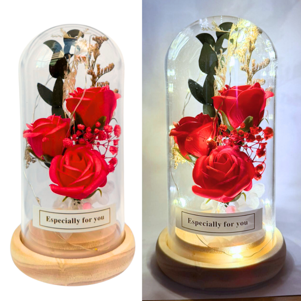 Luminária Cúpula A Bela E A Fera O Pequeno Príncipe Rosa Encantada Rosas Coloridas com LED