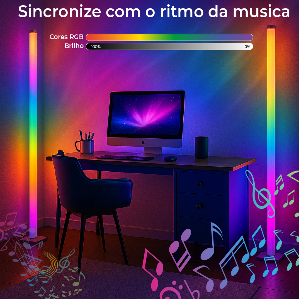 🌈 Luminária de Chão RGB LED Torre Inteligente com Controle | 9.6W | Modo Música | USB | 1,5M Transforme o ambiente da sua casa com uma iluminação moderna, vibrante e inteligente! Ideal para quem busca uma atmosfera criativa, aconchegante ou cheia de energia, a Luminária de Chão RGBIC 1,5M conta com diversos modos de luz, controle remoto e resposta sonora. 🎵 Funções Especiais: • 3 Modos de Música – Luzes que reagem ao som ambiente • Cores RGBIC – Mistura dinâmica de cores com efeito suave • Modo Estático e Branco Misto • Controle IR – Ajuste brilho, cor e modo com praticidade • Timer Automático – Desligamento em 1, 2 ou 3 horas • Ajustes no Controle: • Speed+ / Speed- • Mode+ / Mode- • Brightness+ / Brightness- 📐 Especificações Técnicas: • Modelo: LDFL-RGBIC-1.5 • Tamanho: 1500 x 125 x 125 mm • Material: ABS + PP • LEDs: 70 unidades – Tipo 5050 • Voltagem de Entrada: DC 5V (USB) • Potência: 9.6W • Cor da Luz: RGBIC • Controle: IR com bateria CR2032 (inclusa) • Alcance do Controle: < 5 metros • Classificação IP: IP20 – uso interno 💡 Ideal para: • Ambientes gamer • Estúdios criativos • Salas modernas • Quartos, eventos e decoração versátil ⚠️ ATENÇÃO: O título "Kit 8" não influencia na quantidade enviada. Escolha a quantidade desejada (2 até 8 peças) nas variações abaixo. 📦 Entrega rápida + Nota Fiscal!